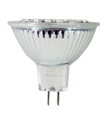 MR16s have a slightly different connector – 2 pointed ‘prongs’ and are powered by 12V (DC). LED MR16 SocketRather than being supplied directly from the mains, these bulbs are connected to the mains via a transformer, which you is normally to be found in your ceiling void within a short distance of the light fitting.