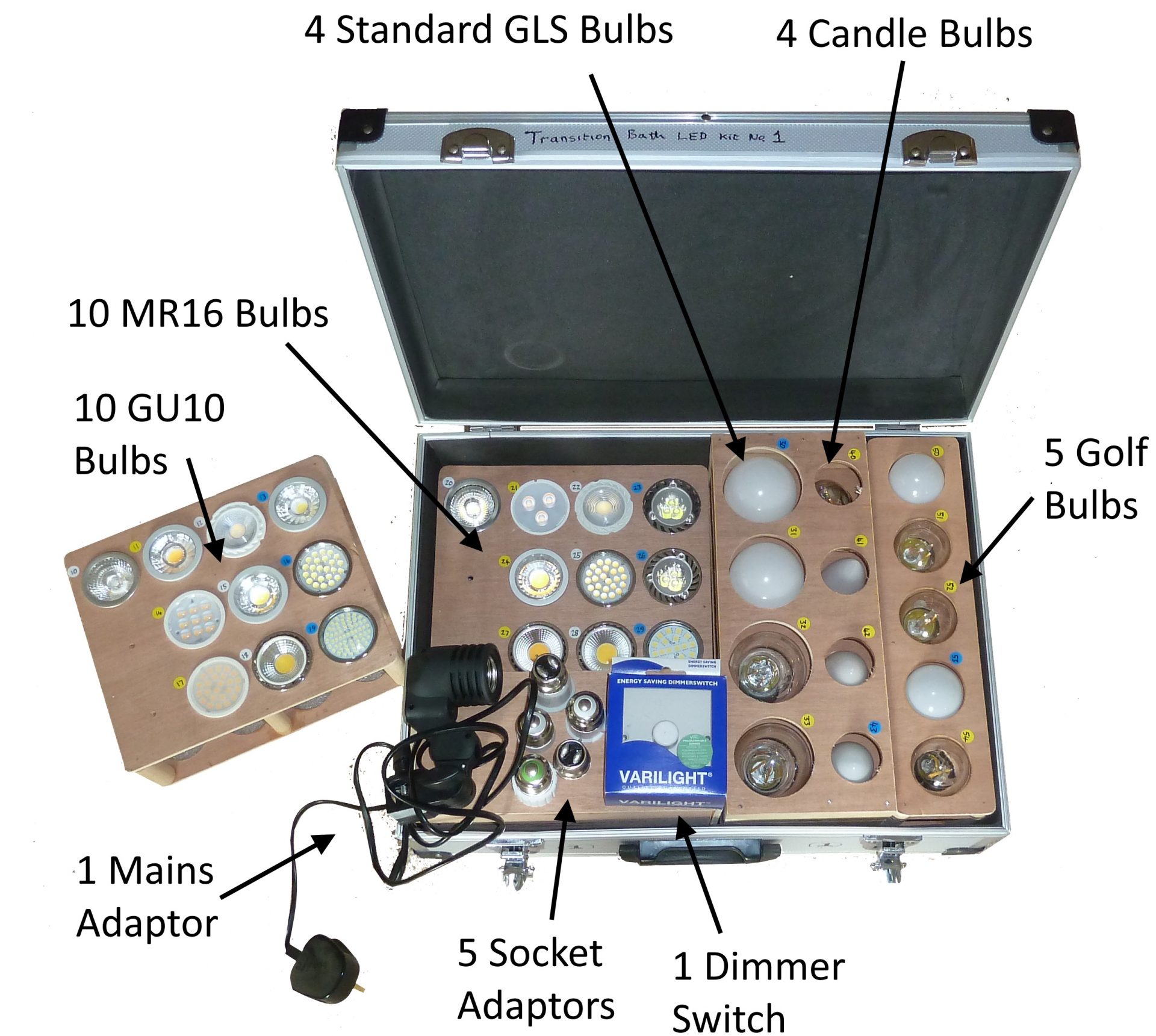 • To book the kit phone Council Connect on 01225 39 40 41 or go to Bath Central Library and ask to book the ‘Transition Bath LED Try-before-you-buy kit’